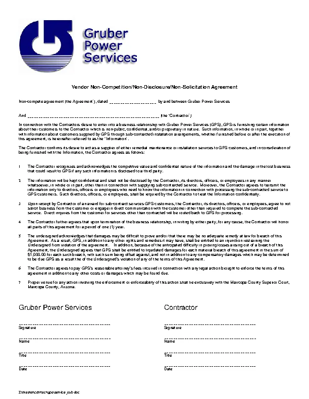 Sub Vendor Non Compete Agreement PDFSimpli