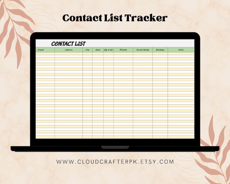 Google Sheets Contact List Tracker Digital Address Book Spreadsheet