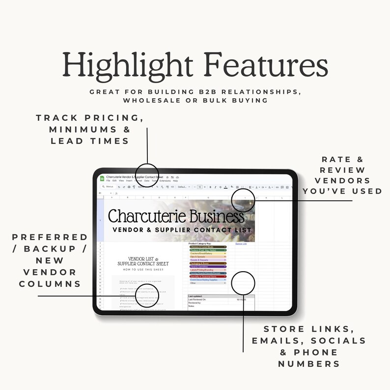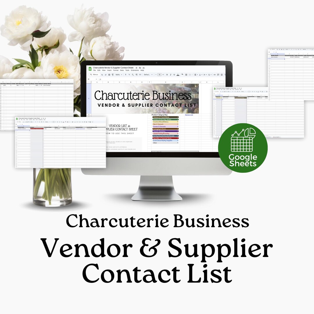 Charcuterie Business Vendor and Supplier Contact List Google Sheets