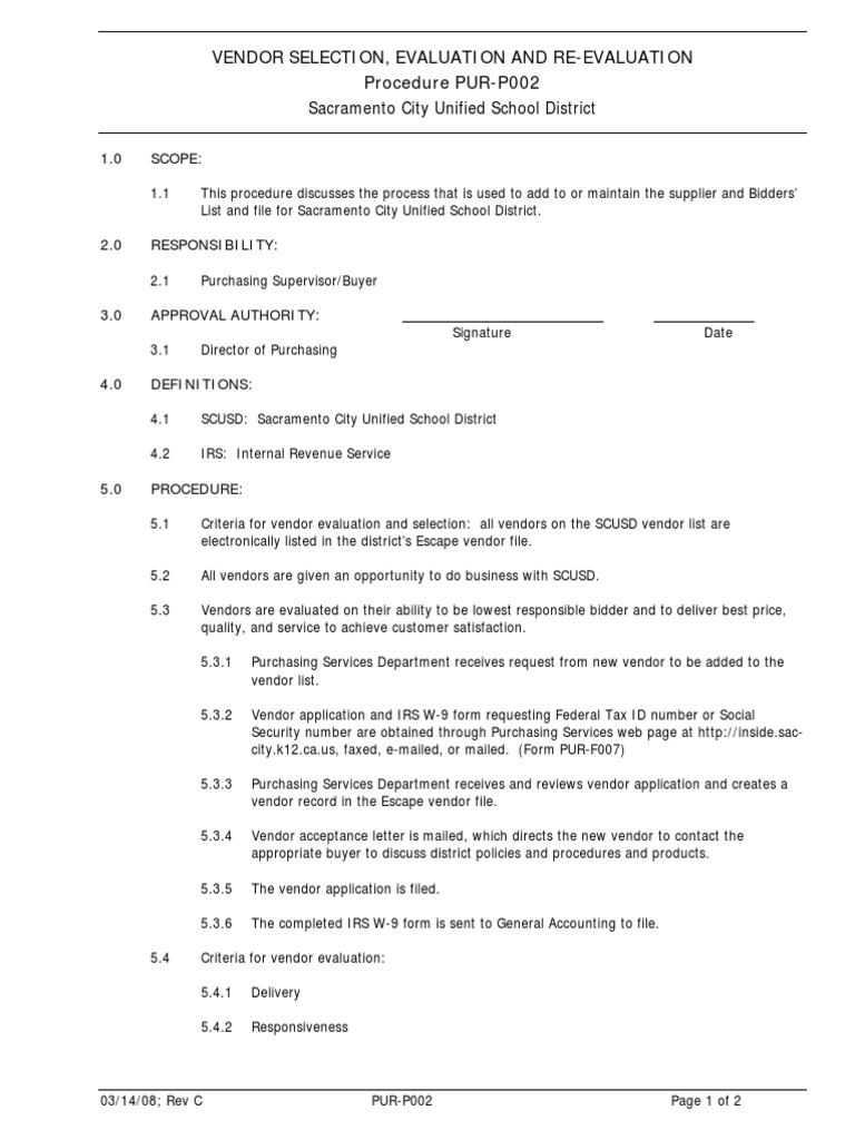 Vendor Selection Procedure Template Word