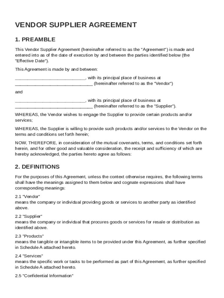Vendor Supplier Agreement Template: Fill out sign online DocHub