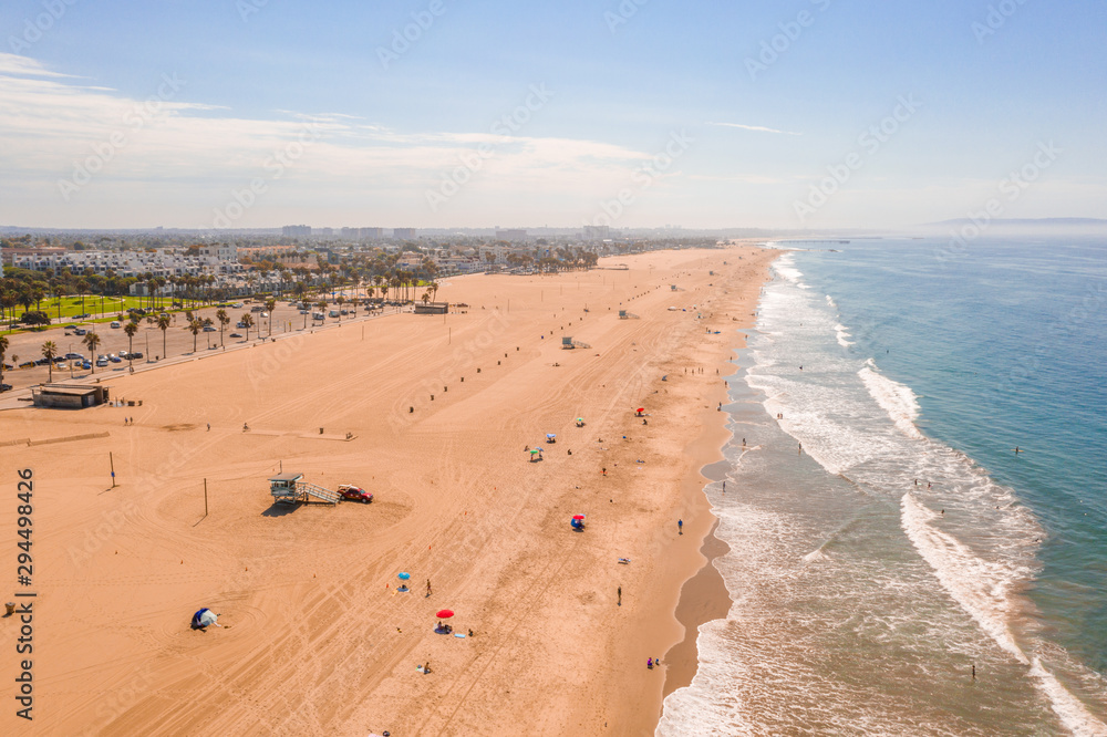 Aerial view of the Venice Beach in LA California near the artist Rip
