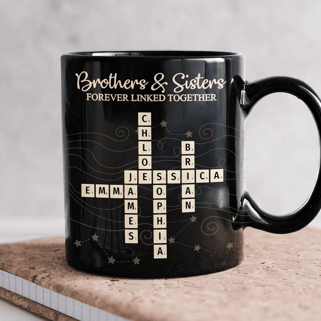 Personalized Siblings Mug: Crossword Puzzle Art Gift for Brother