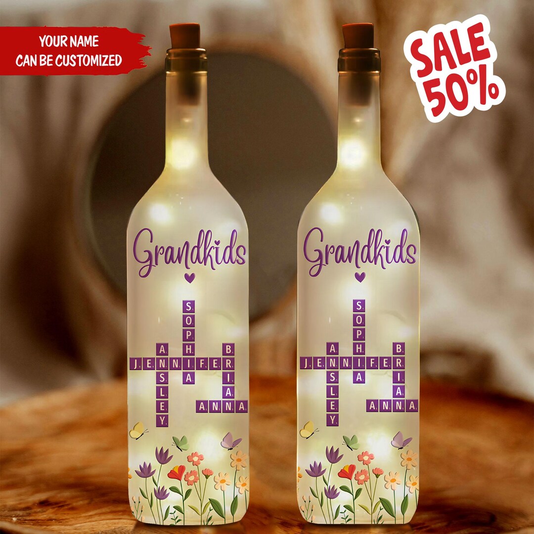 Personalized Grandkids Crossword Puzzle Bottle Lamp Mothers Day Gift