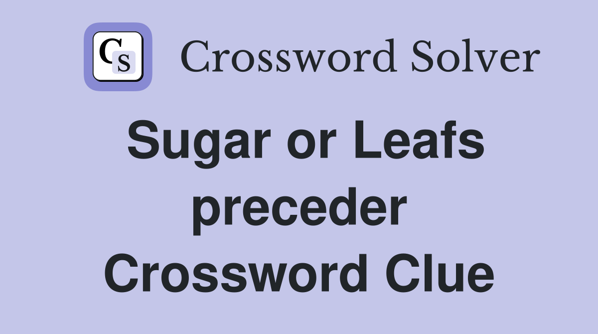 Sugar or Leafs preceder Crossword Clue Answers Crossword Solver