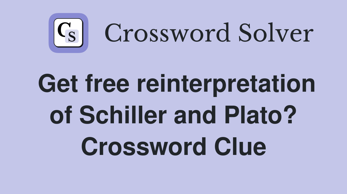 Get free reinterpretation of Schiller and Plato? Crossword Clue