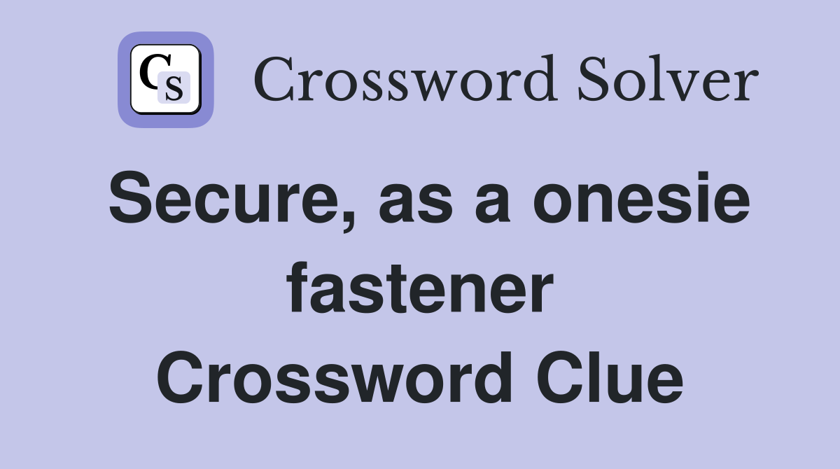 Secure as a onesie fastener Crossword Clue Answers Crossword Solver