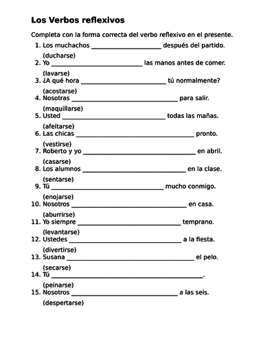 Spanish Reflexive Verbs Worksheet Los verbos reflexivos