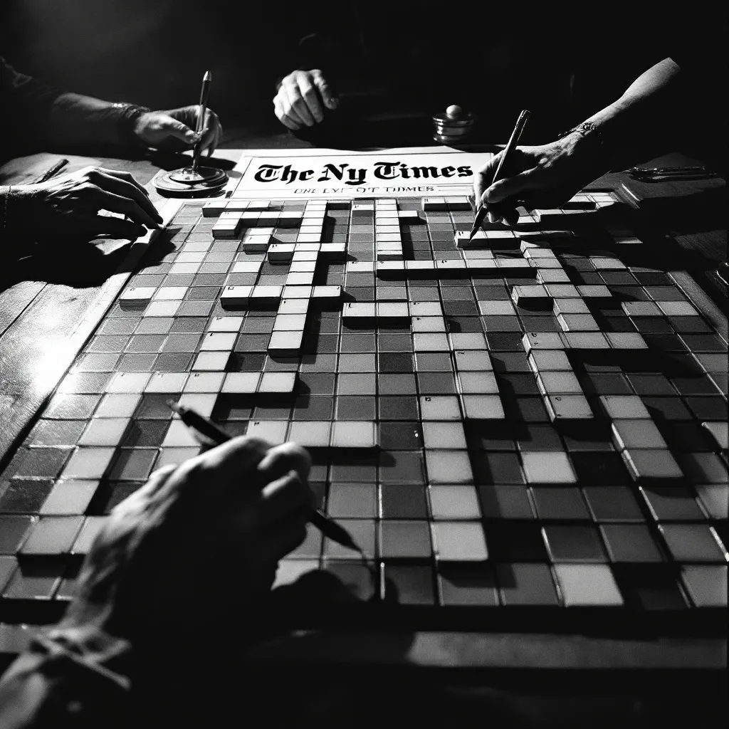 Giant 3D crossword puzzle on 1950s dinner table hyp