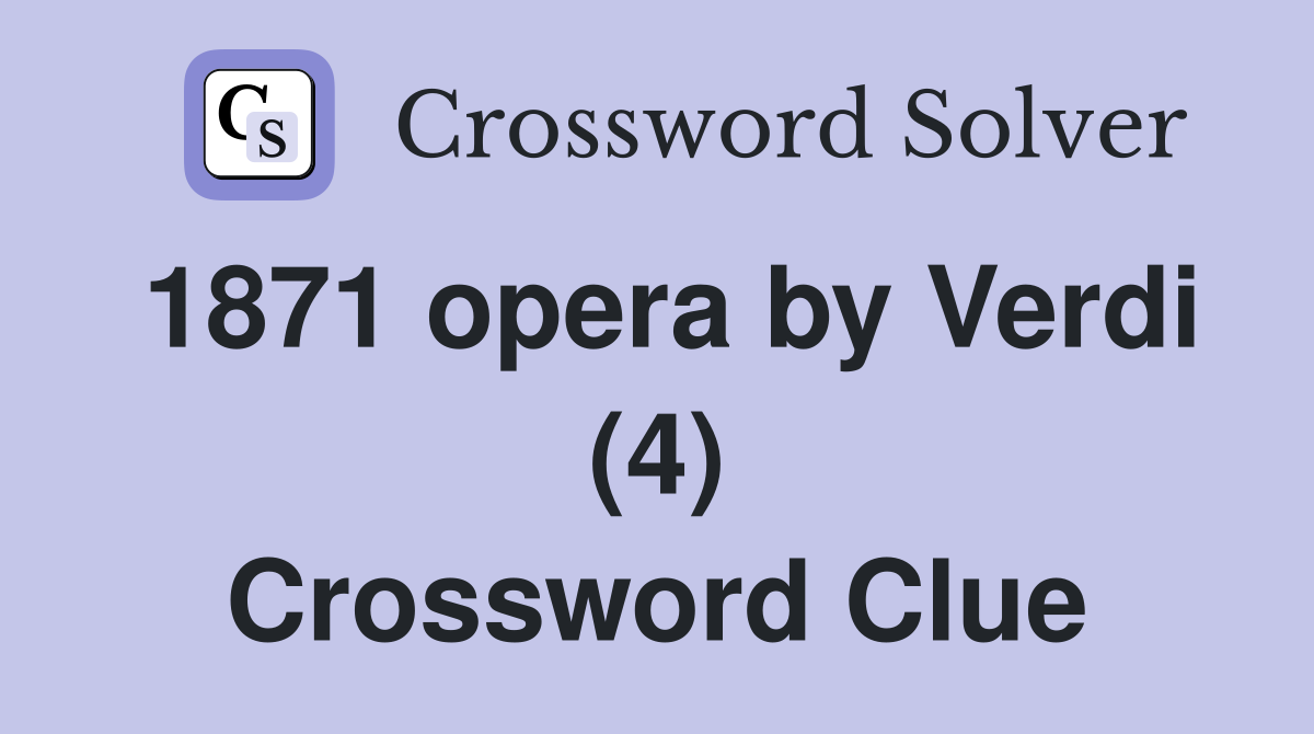 1871 opera by Verdi (4) Crossword Clue Answers Crossword Solver