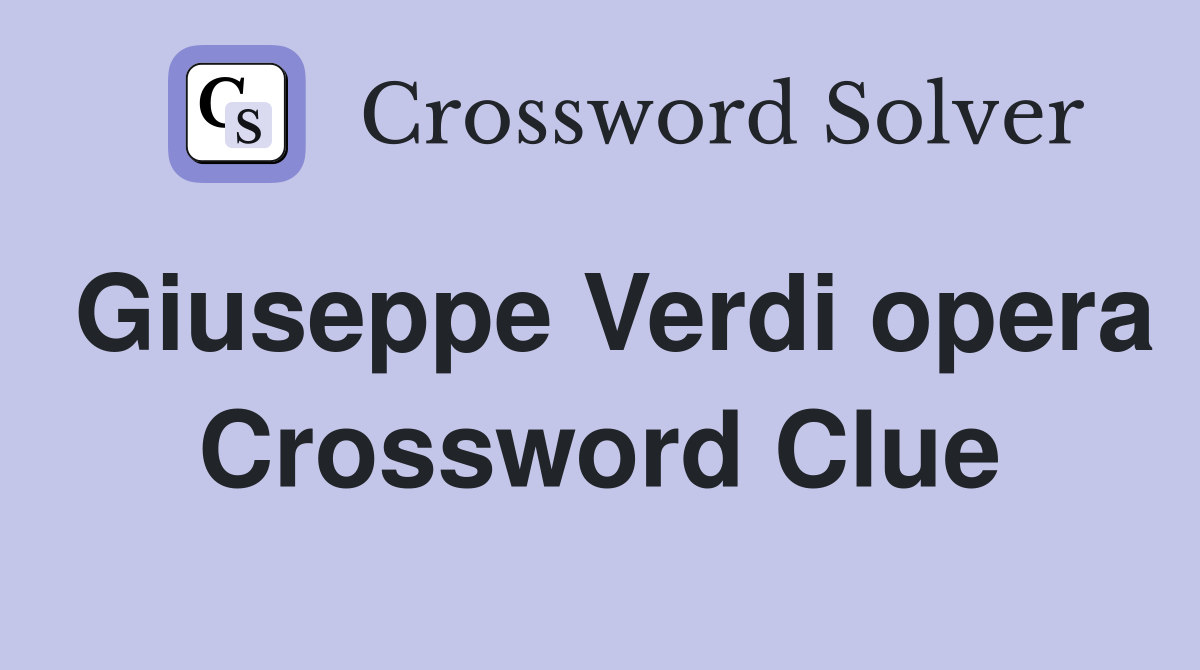 Giuseppe Verdi opera Crossword Clue Answers Crossword Solver
