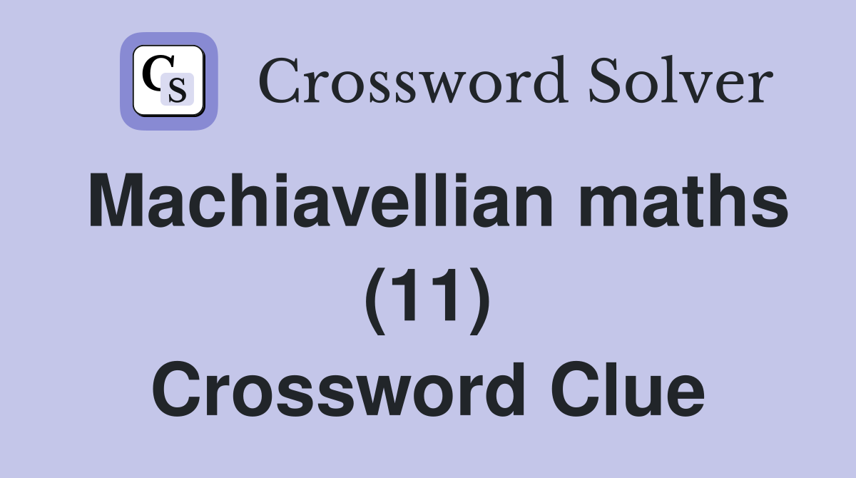 Machiavellian maths (11) Crossword Clue Answers Crossword Solver