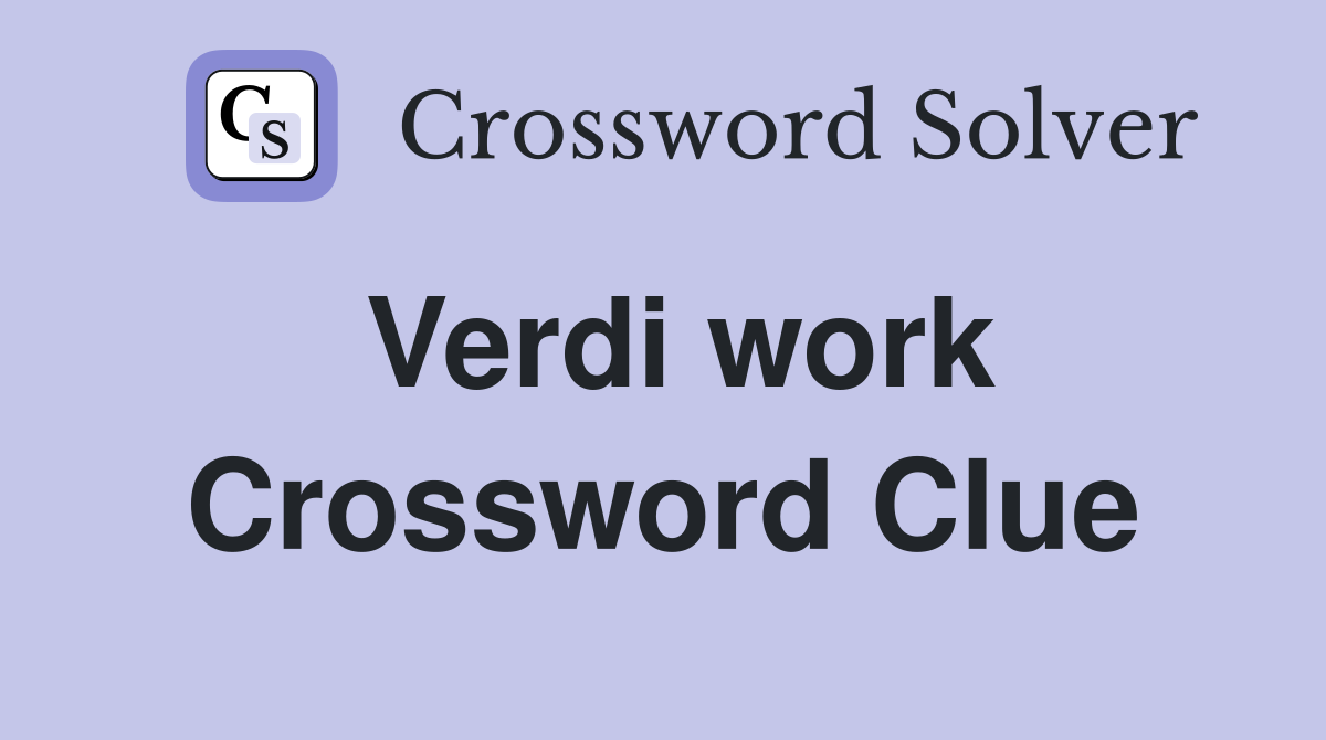 Here are some of the images for Verdi Work Crossword Clue that we found in our website database.