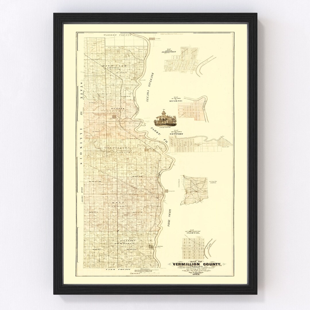 Vermillion County Map 1872 Vintage Vermillion County Map Old
