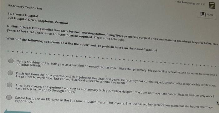 Solved Pharmacy Technician St Francis Hospital 200 Hospital Chegg com