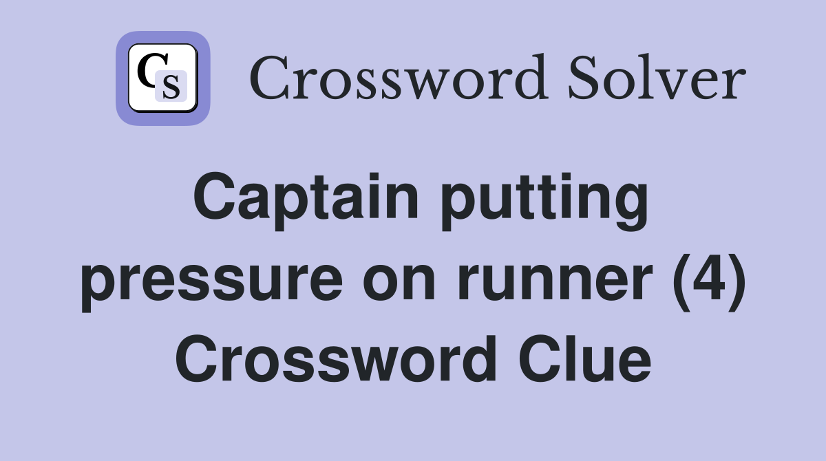 Captain putting pressure on runner (4) Crossword Clue Answers
