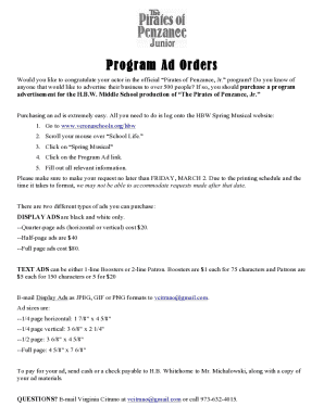 Fillable Online Pirate Ad Order Form Verona Public Schools Fax Email