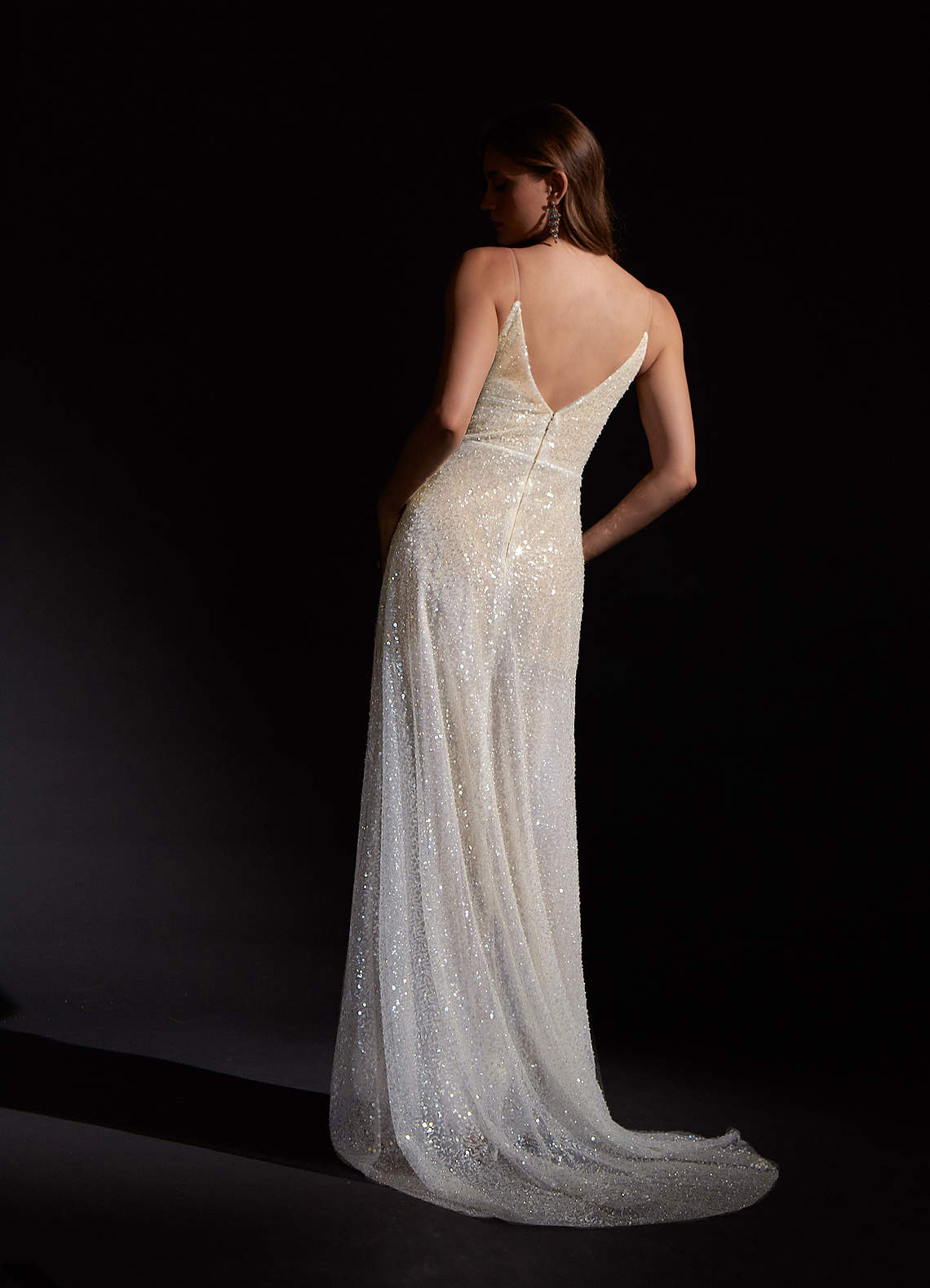 Diamond White/Champagne Platinum A Line V Neck Sequins Sequins Court