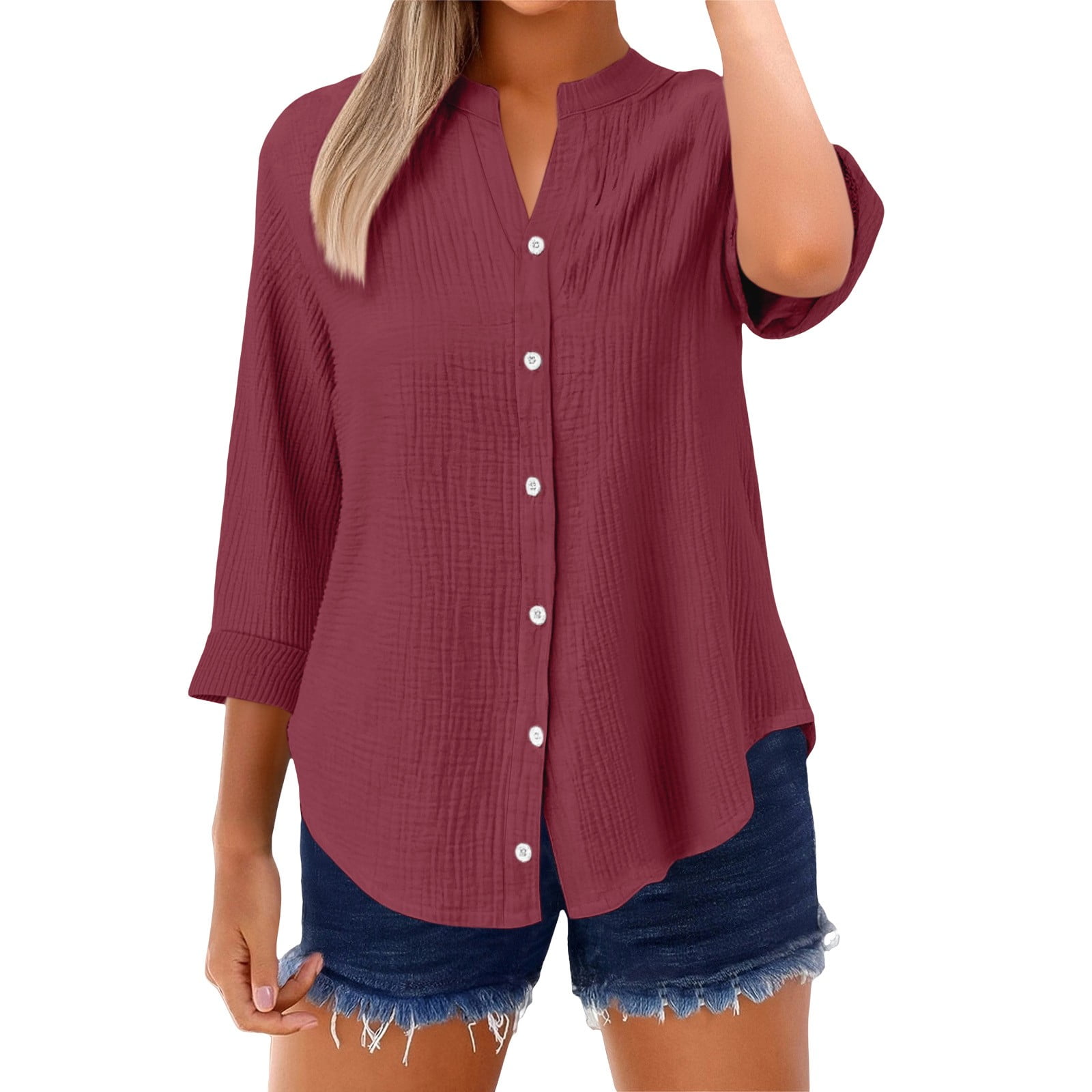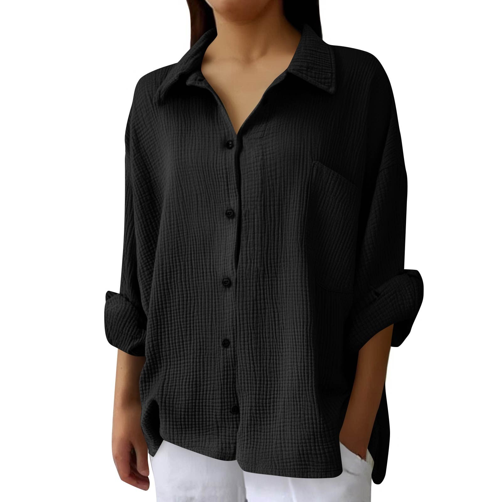 Breezora Women #39 s Versatile Crinkle Sleeve Blouse in Cotton Linen Blend
