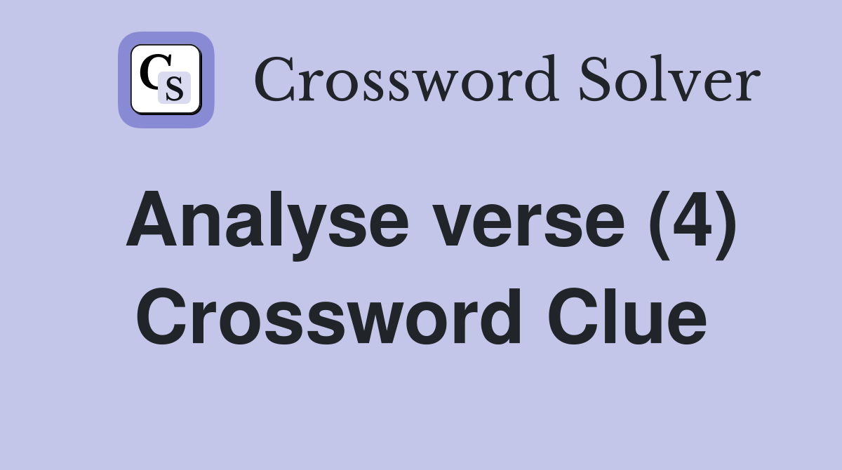 Analyse verse (4) Crossword Clue Answers Crossword Solver