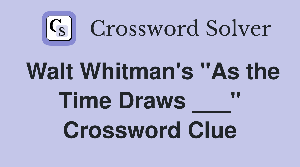Walt Whitman #39 s quot As the Time Draws quot Crossword Clue Answers