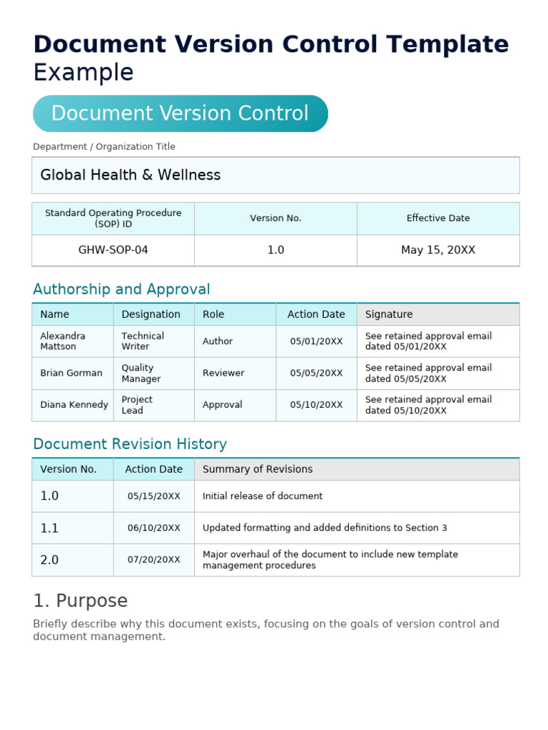 Document Control Versioning SOP Template (word PDF) Simple