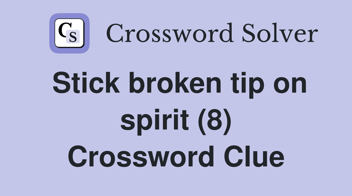 Stick broken tip on spirit (8) Crossword Clue Answers Crossword Solver