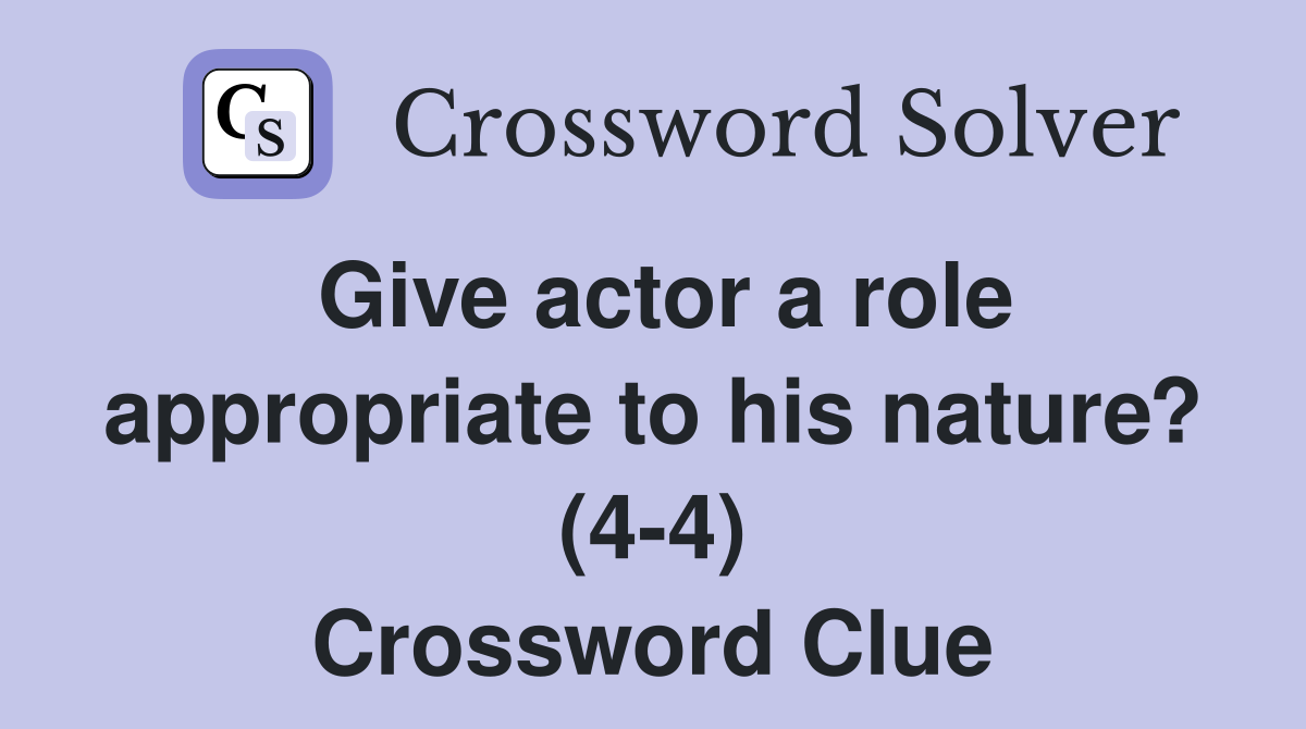 Give actor a role appropriate to his nature? (4 4) Crossword Clue
