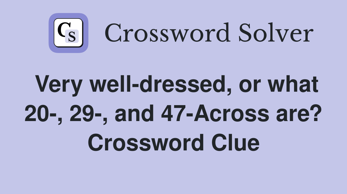 Very well dressed or what 20 29 and 47 Across are? Crossword
