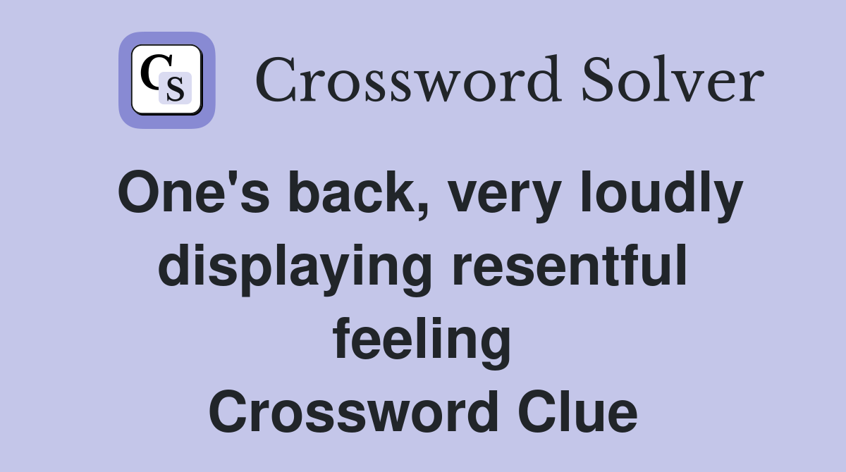 One #39 s back very loudly displaying resentful feeling Crossword Clue