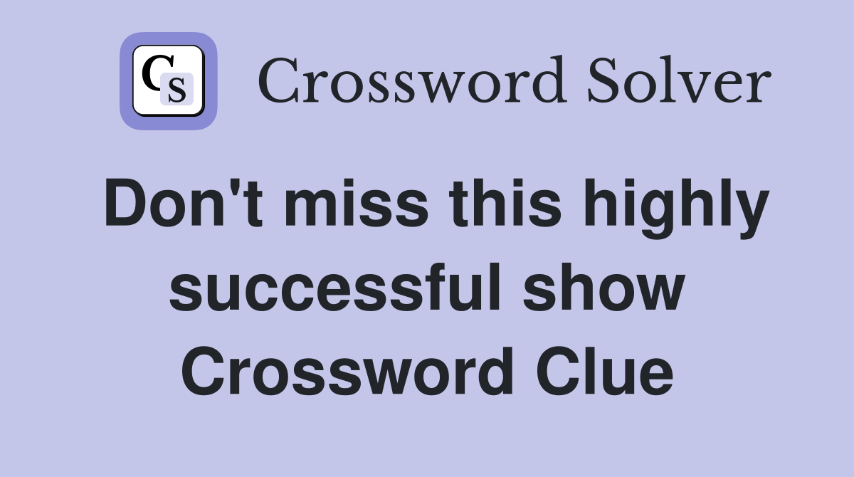 Don #39 t miss this highly successful show Crossword Clue Answers