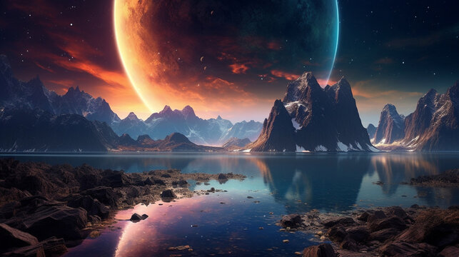 Starry Night Sky with Colorful Celestial Orbs Generate AI Stock