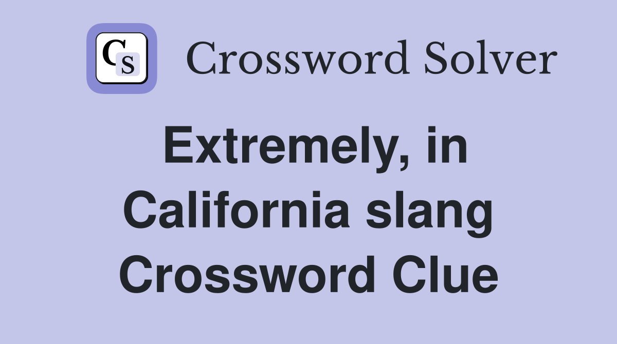 Extremely in California slang Crossword Clue Answers Crossword Solver