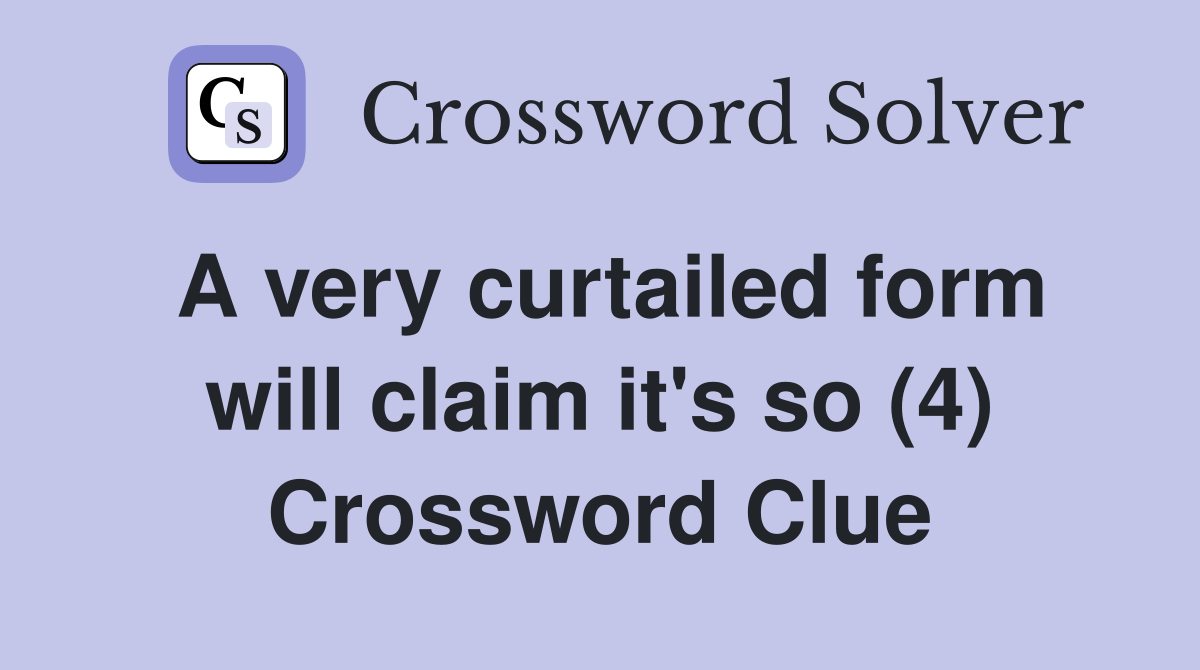 A very curtailed form will claim it #39 s so (4) Crossword Clue Answers