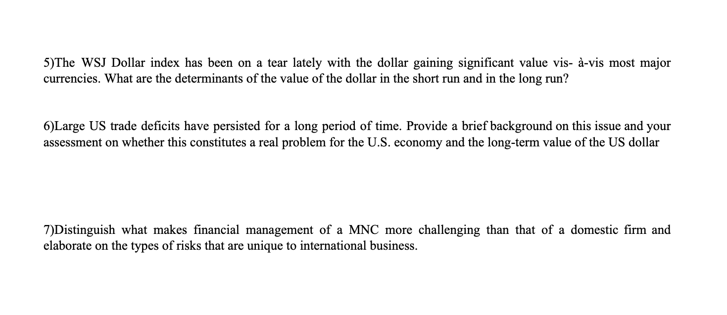 Solved 5)The WSJ Dollar index has been on a tear lately with Chegg com