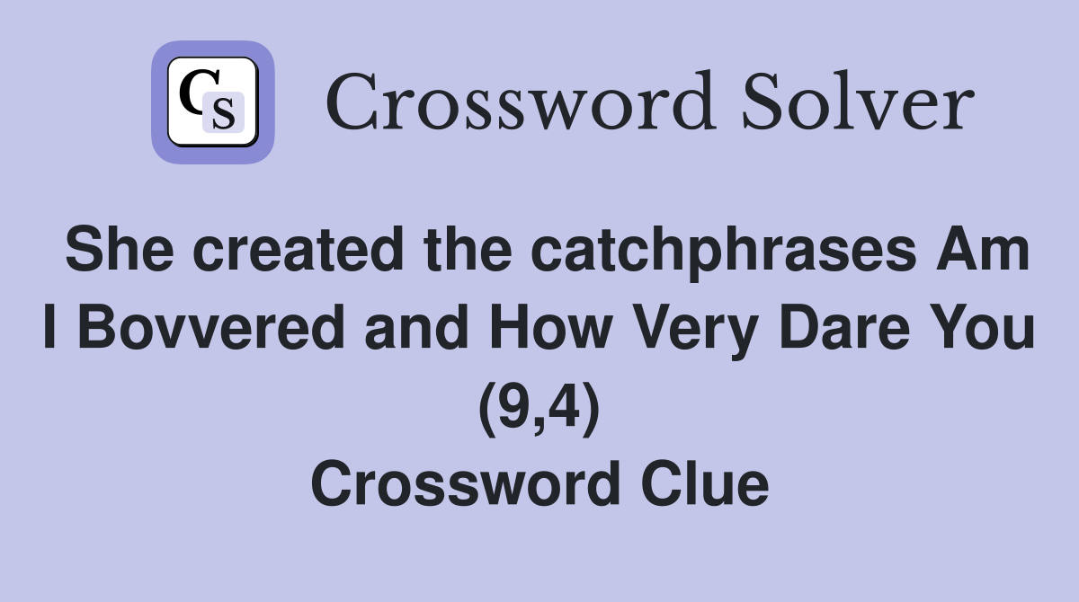 She created the catchphrases Am I Bovvered and How Very Dare You (9 4
