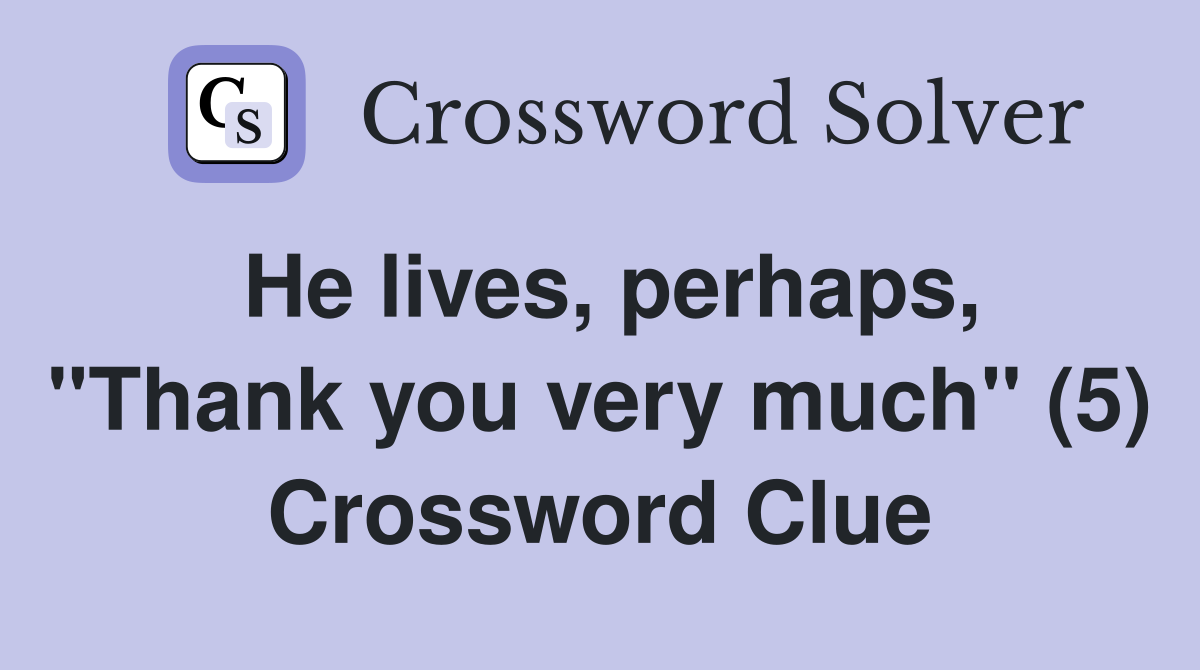 He lives perhaps quot Thank you very much quot (5) Crossword Clue Answers
