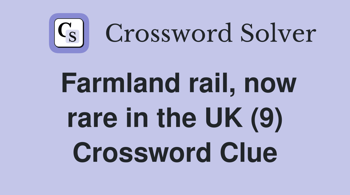 Farmland rail now rare in the UK (9) Crossword Clue Answers