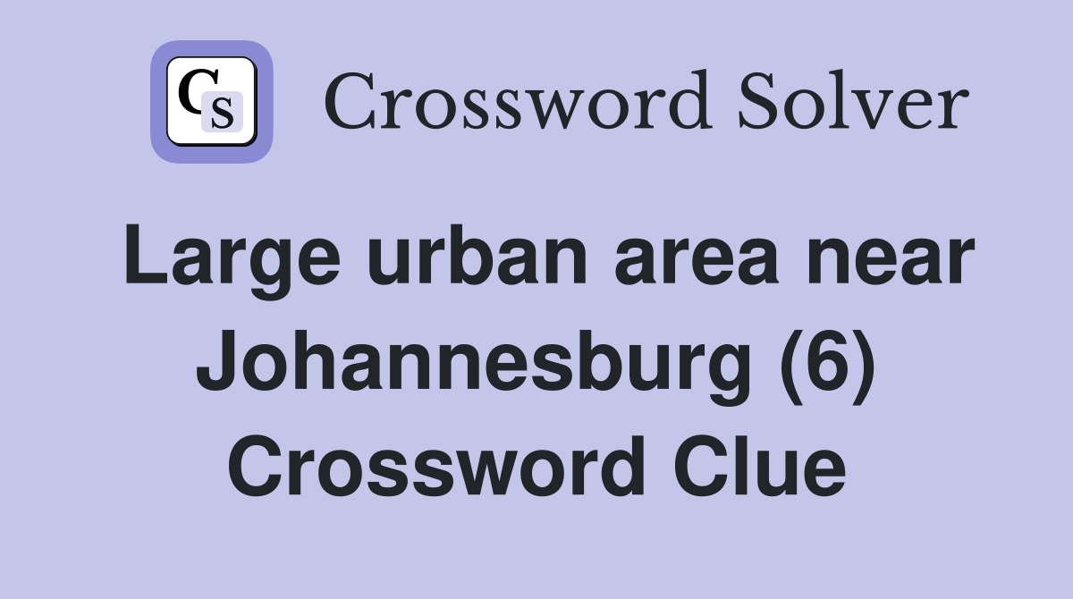Large urban area near Johannesburg (6) Crossword Clue Answers