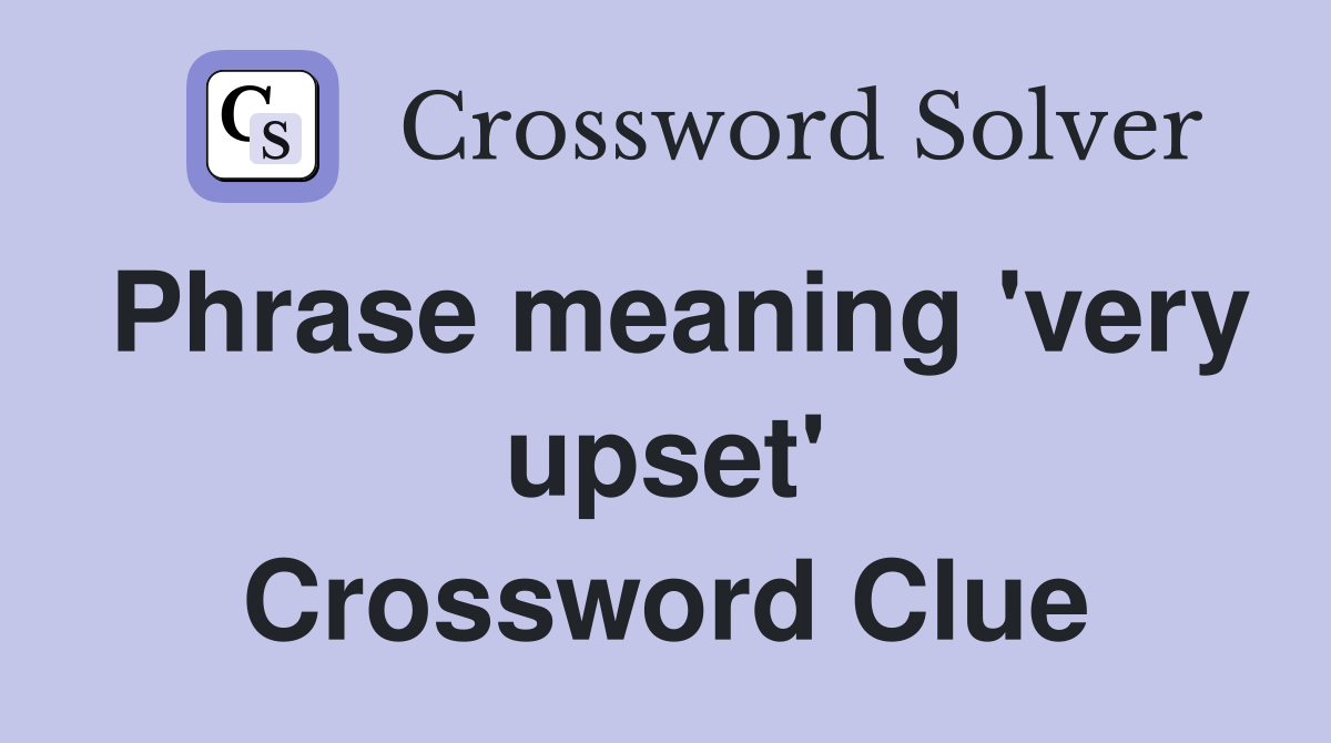 Phrase meaning #39 very upset #39 Crossword Clue Answers Crossword Solver