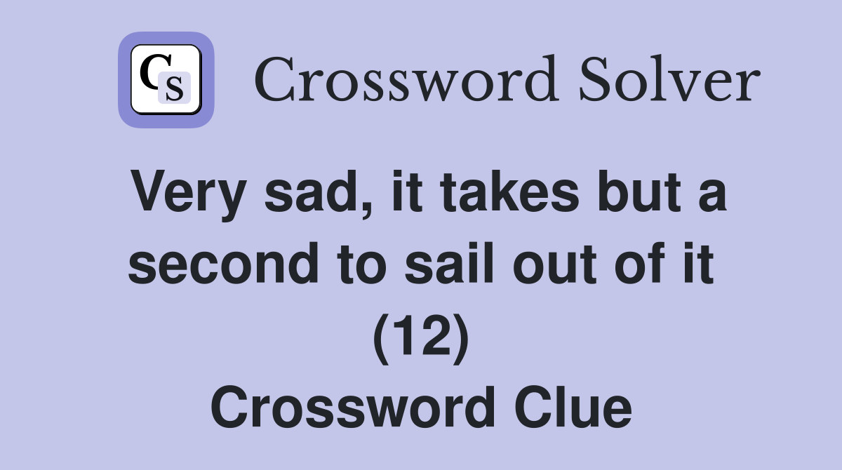 Very sad it takes but a second to sail out of it (12) Crossword Clue