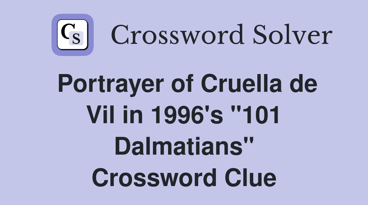 Portrayer of Cruella de Vil in 1996 #39 s quot 101 Dalmatians quot Crossword Clue