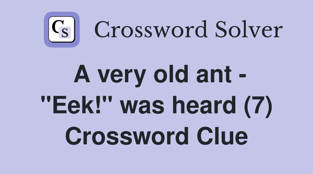 A very old ant quot Eek quot was heard (7) Crossword Clue Answers