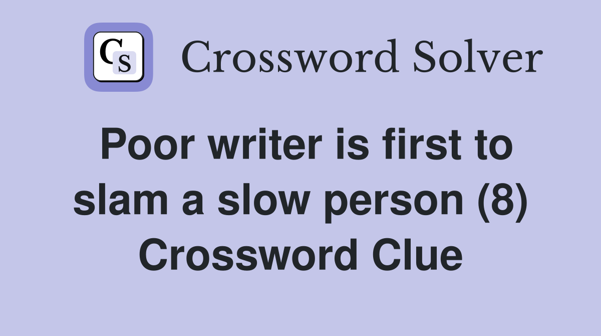Poor writer is first to slam a slow person (8) Crossword Clue Answers