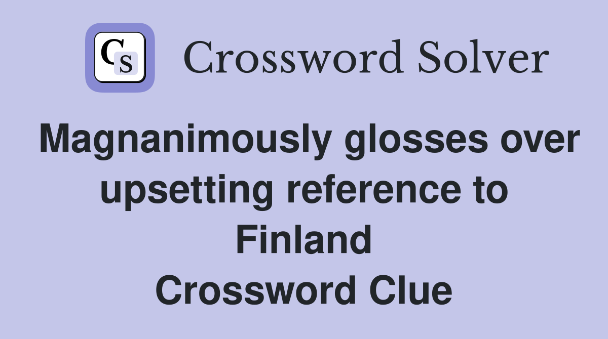 Magnanimously glosses over upsetting reference to Finland Crossword