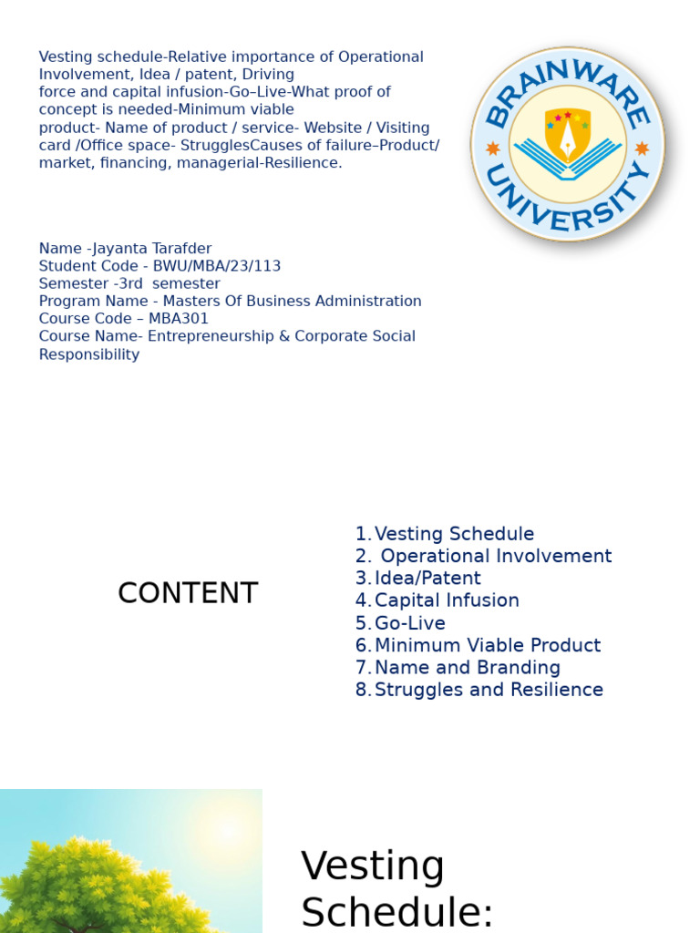 Vesting Schedule Startup Success Blueprint PDF Startup Company