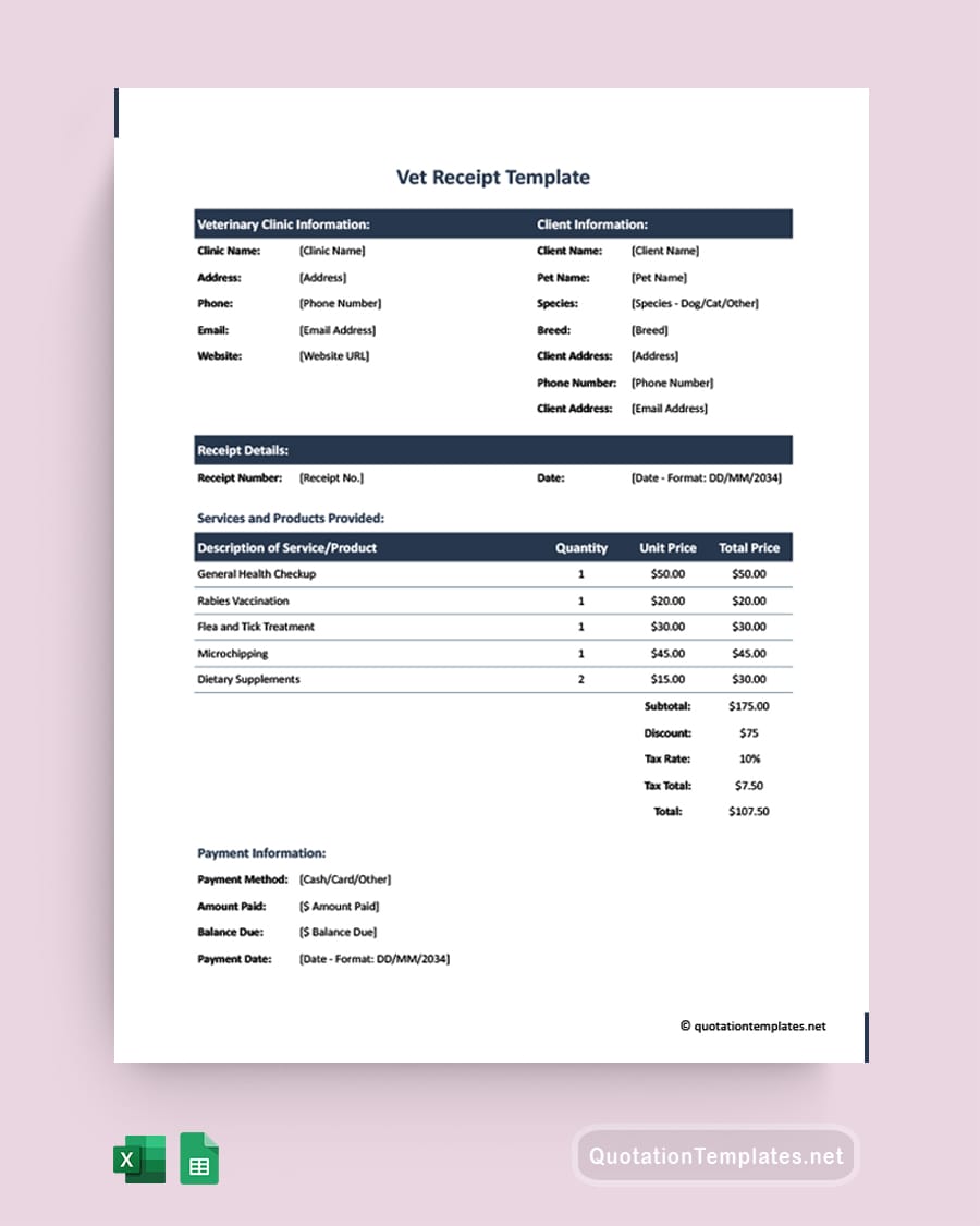 Vet Receipt Template
