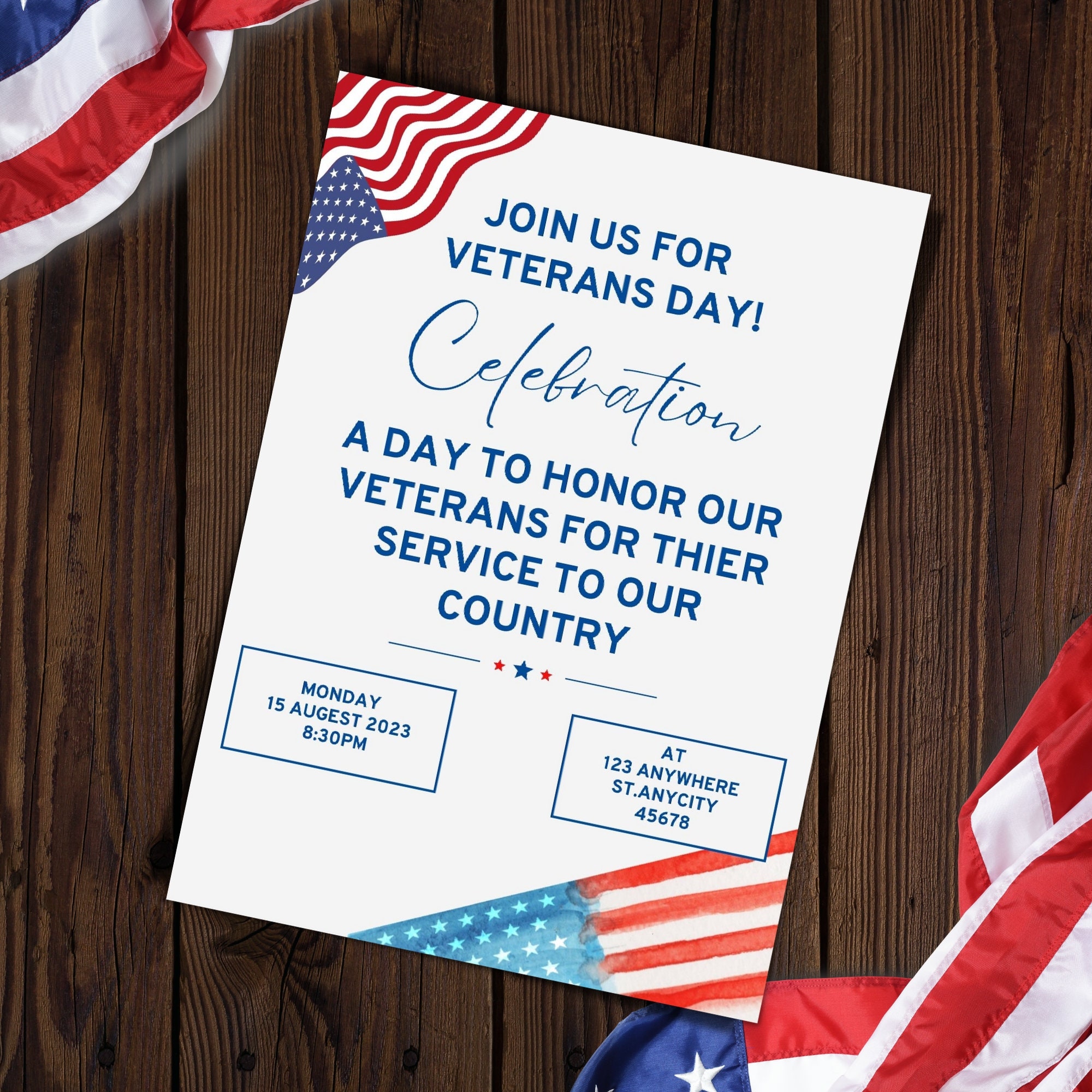 Veterans Day Invitation Template Celebrate Veterans Day Poster Size