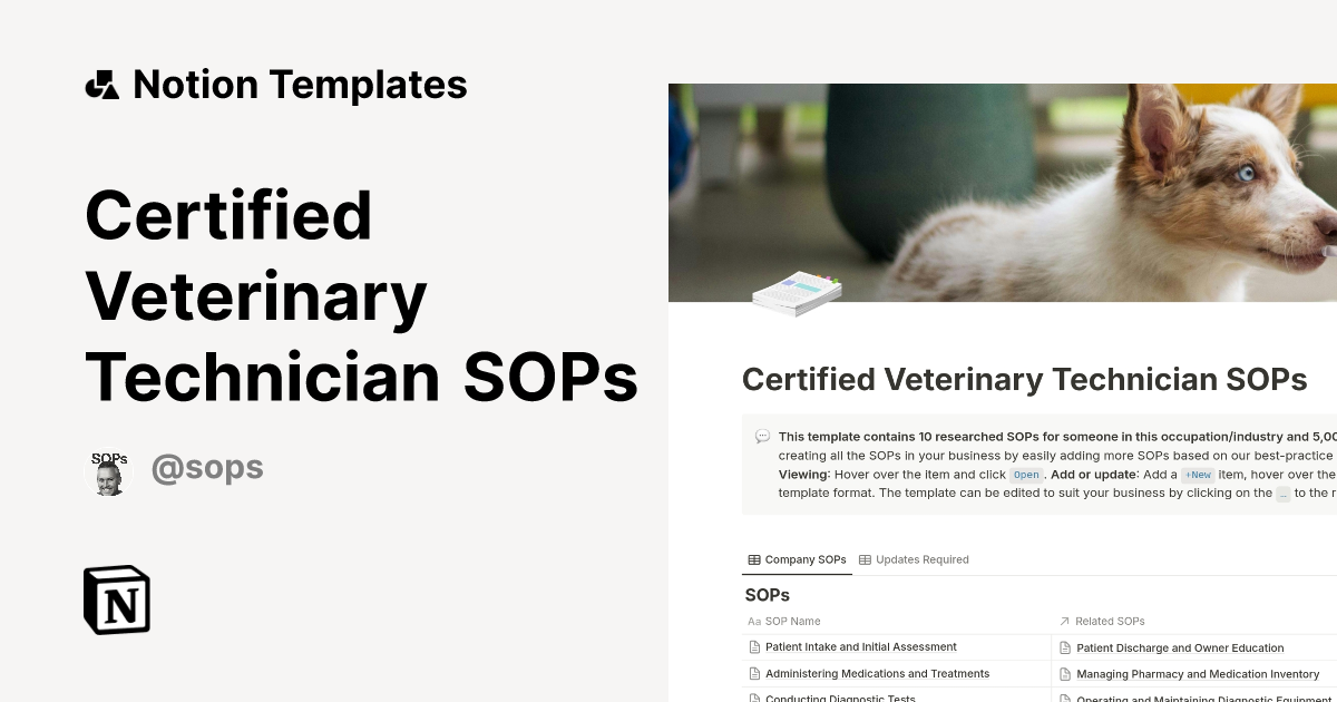 Certified Veterinary Technician SOPs Template Notion Marketplace
