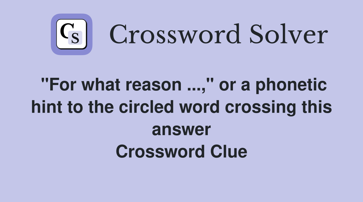 quot For what reason quot or a phonetic hint to the circled word crossing
